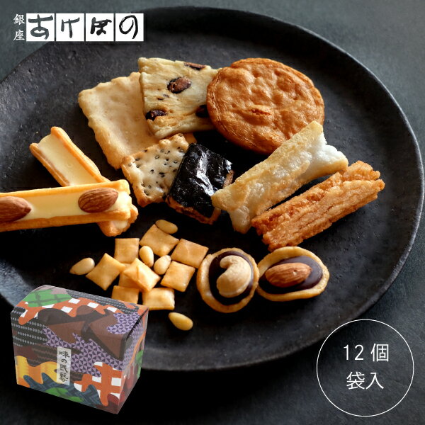 | 商品紹介 | 素材から装いの細部まで、全てに心を配った銀座あけぼのの自信作です。 チーズ・チョコなど個性的なおかきも入った、こだわり12種のおかきを12個詰合せた袋入りです。 |